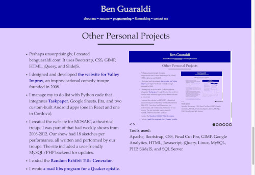 Apache, Bootstrap, CSS, Final Cut Pro, GIMP, Google Analytics, HTML, Javascript, jQuery, Linux, MySQL, PHP,